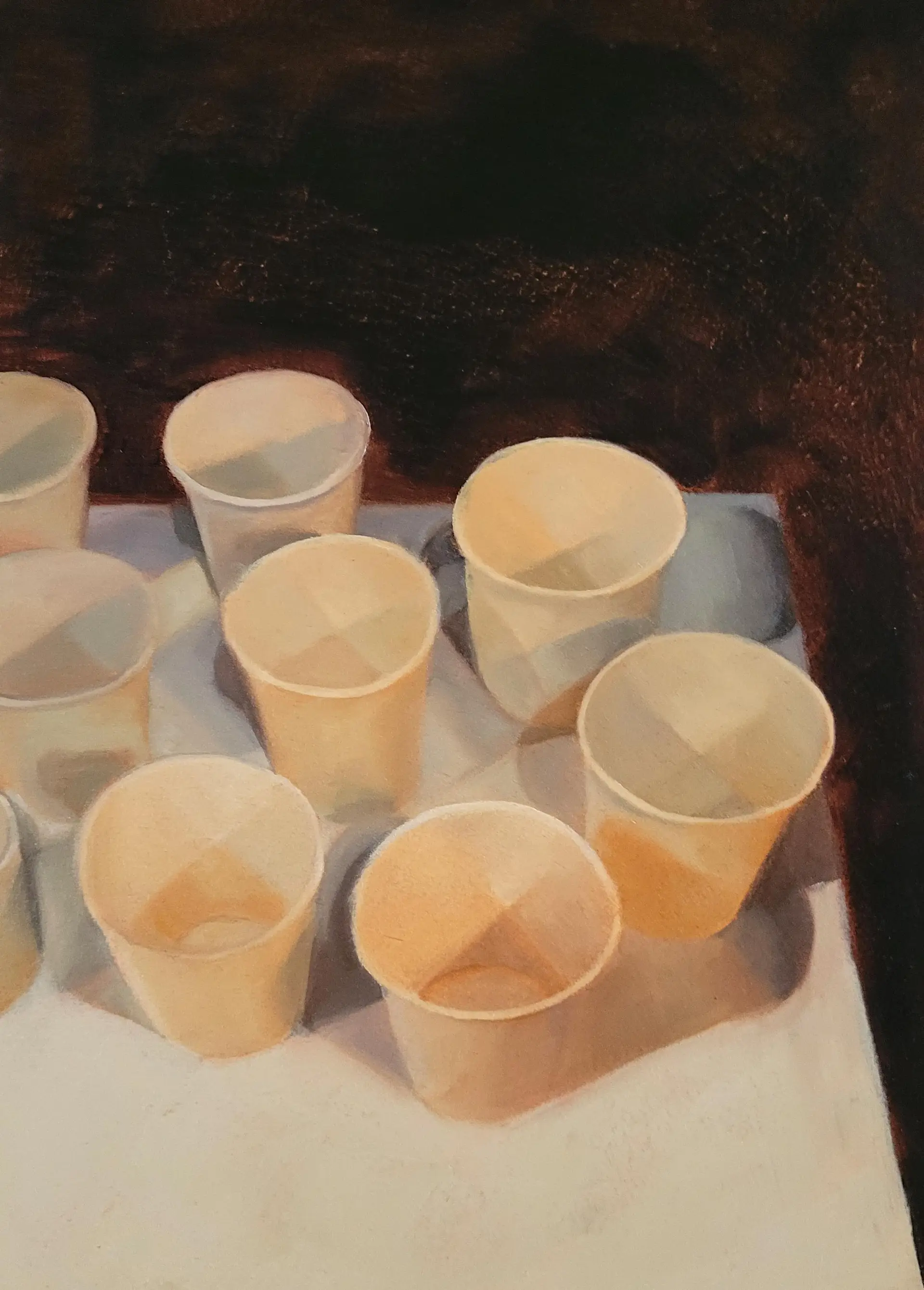 Still life of nine paper cups